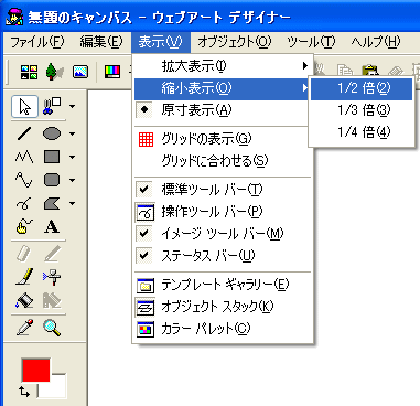 ウインドウの上部に(1/2倍)の表示がされ、キャンバスの全体が表示されました。