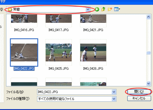 加工したいファイルが保存してあるフォルダを選び、画像を選択し、開くボタンをクリックします。または画像をダブルクリックしても同様です。