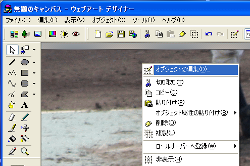 表示された画像にマウスを合わせ右クリック、オブジェクトの編集を選びます。