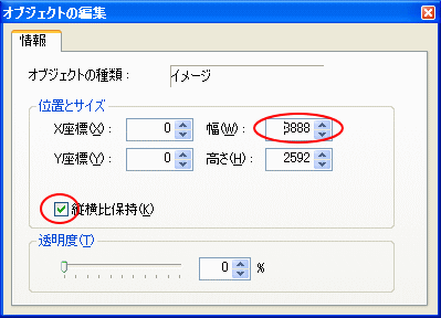 前述の→オブジェクトの編集 を参考に調整してください。今回は横2500としました。