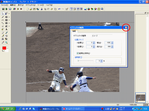 オブジェクトの編集ウインドウを右上のXボタンをクリックして閉じます。