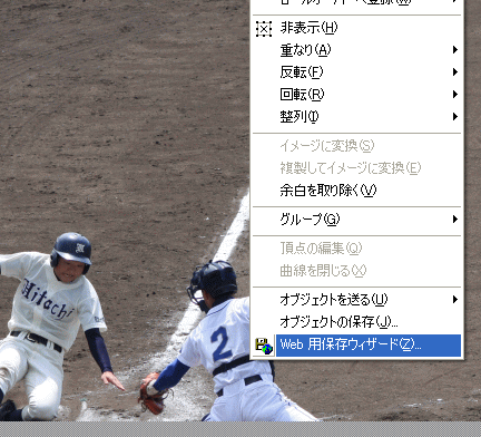 右クリックで表示されるメニューからからWeb用保存ウィザードを選択します。