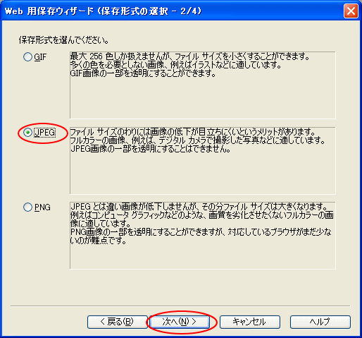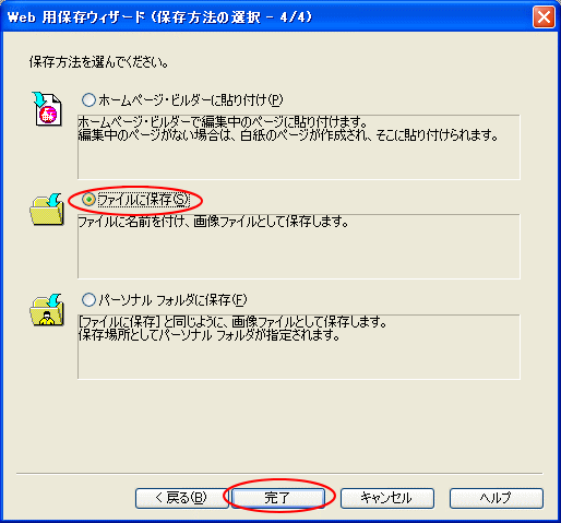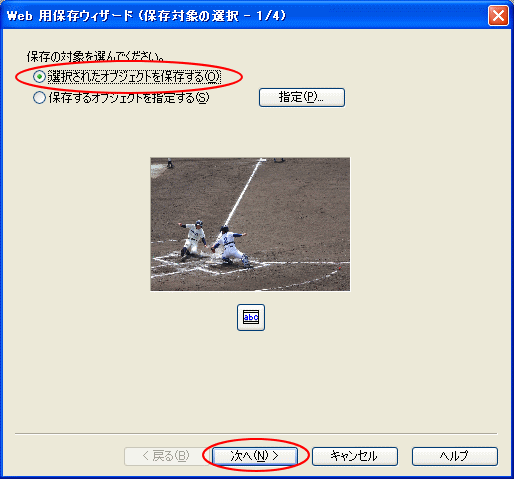 Web用保存ウィザードにしたがって作業を進めていきます。