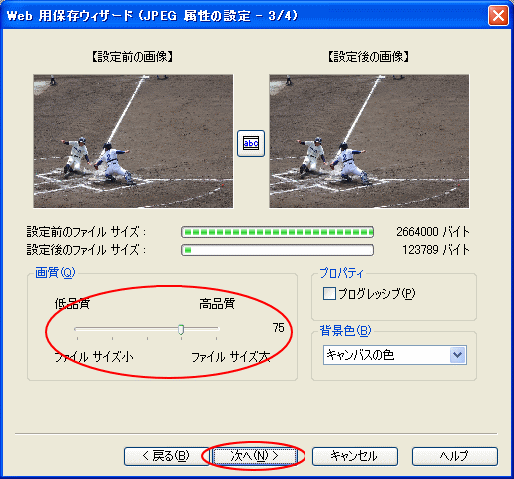JPEG画像で保存する場合は画質の選択が出来ます。