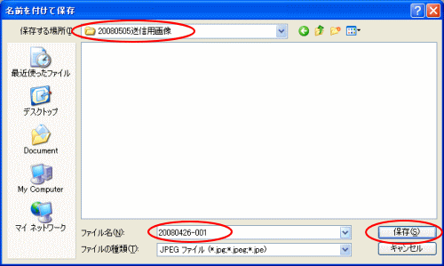 保存する場所に任意のフォルダを指定し、ファイル名に管理しやすい名前をつけます。